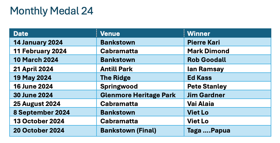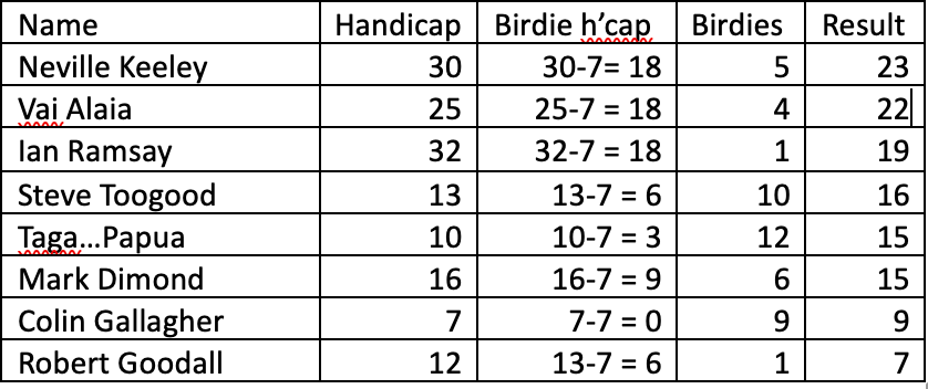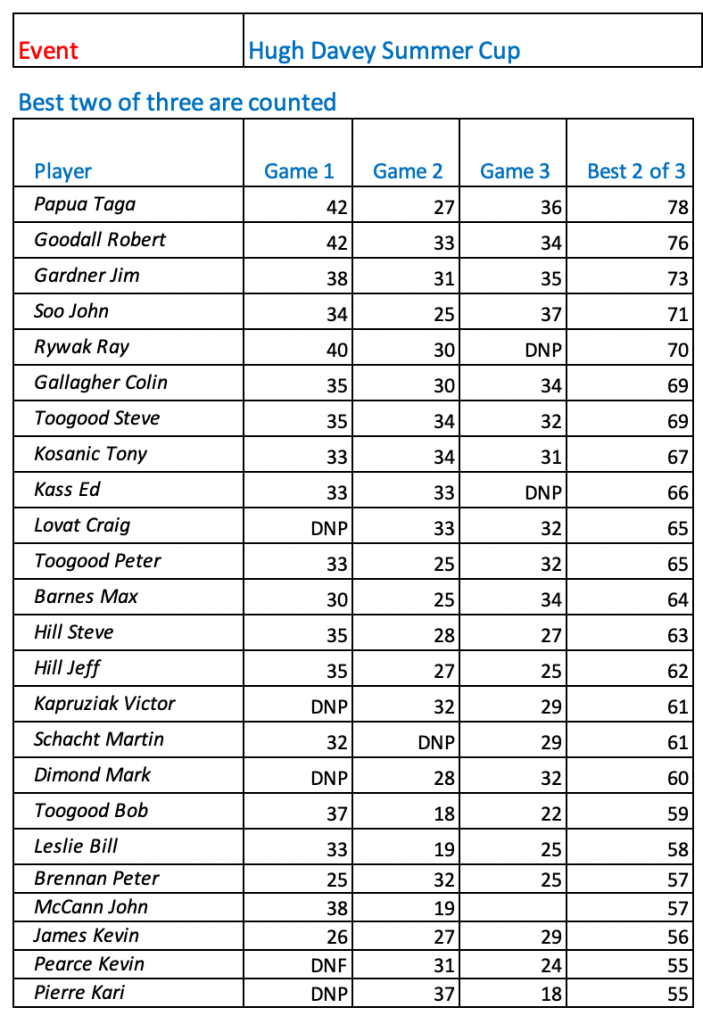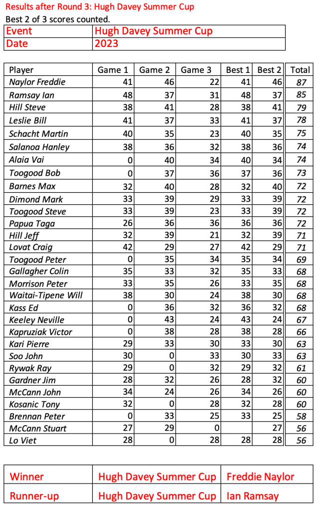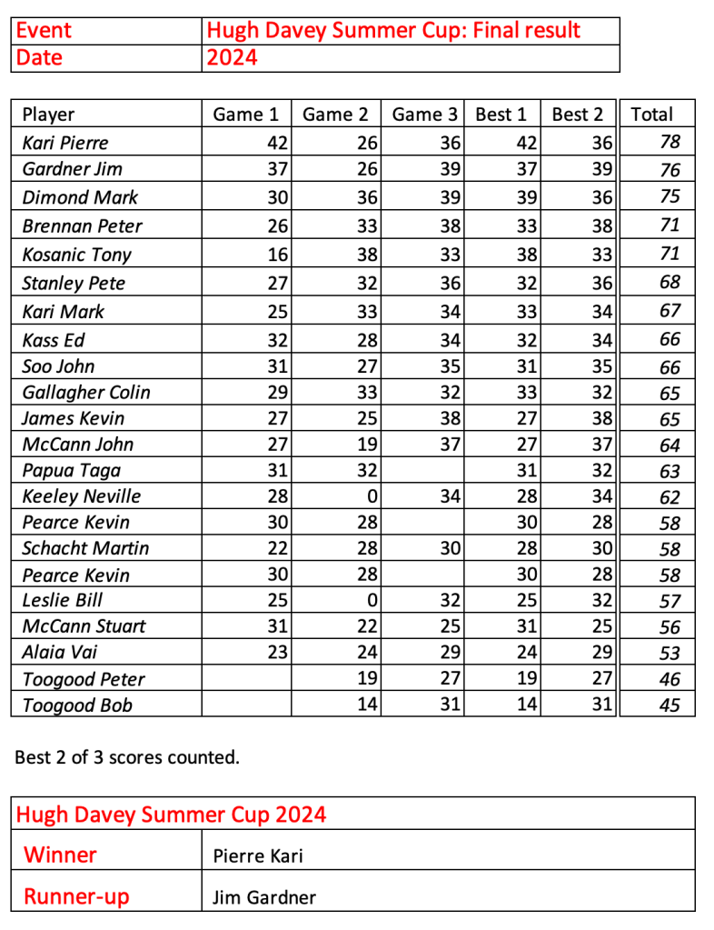 | Hugh Davey Summer Cup | Taga Papua | 78 | Rob Goodall | 76 |