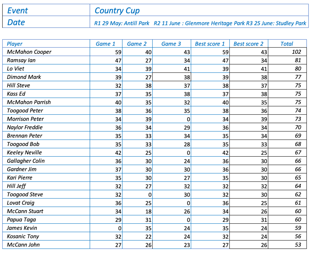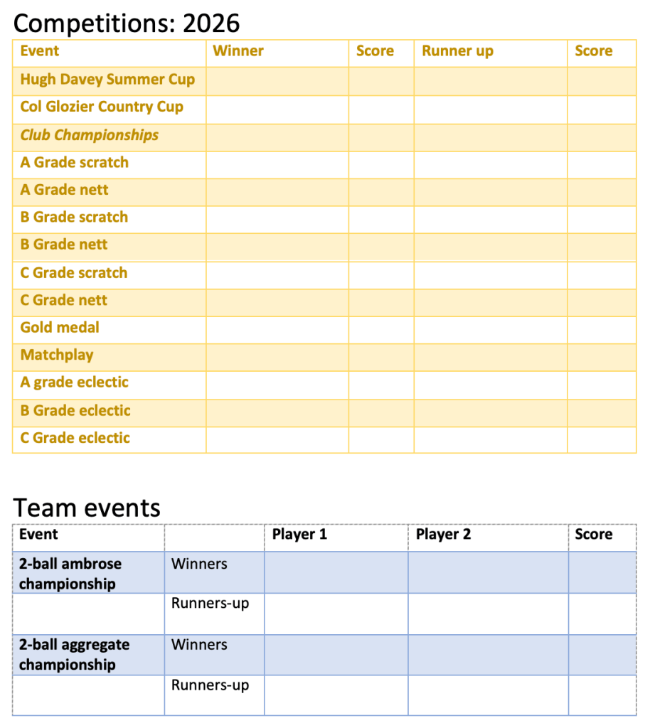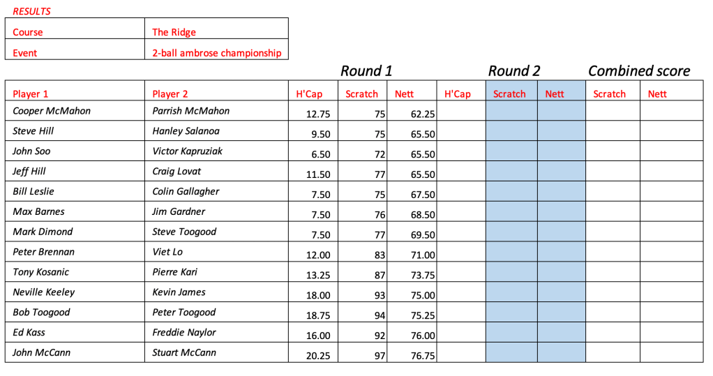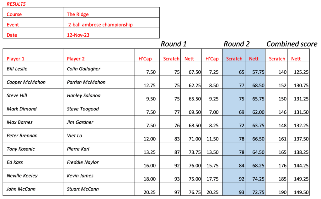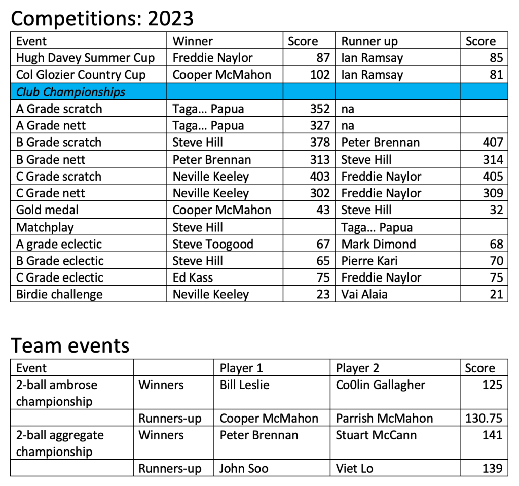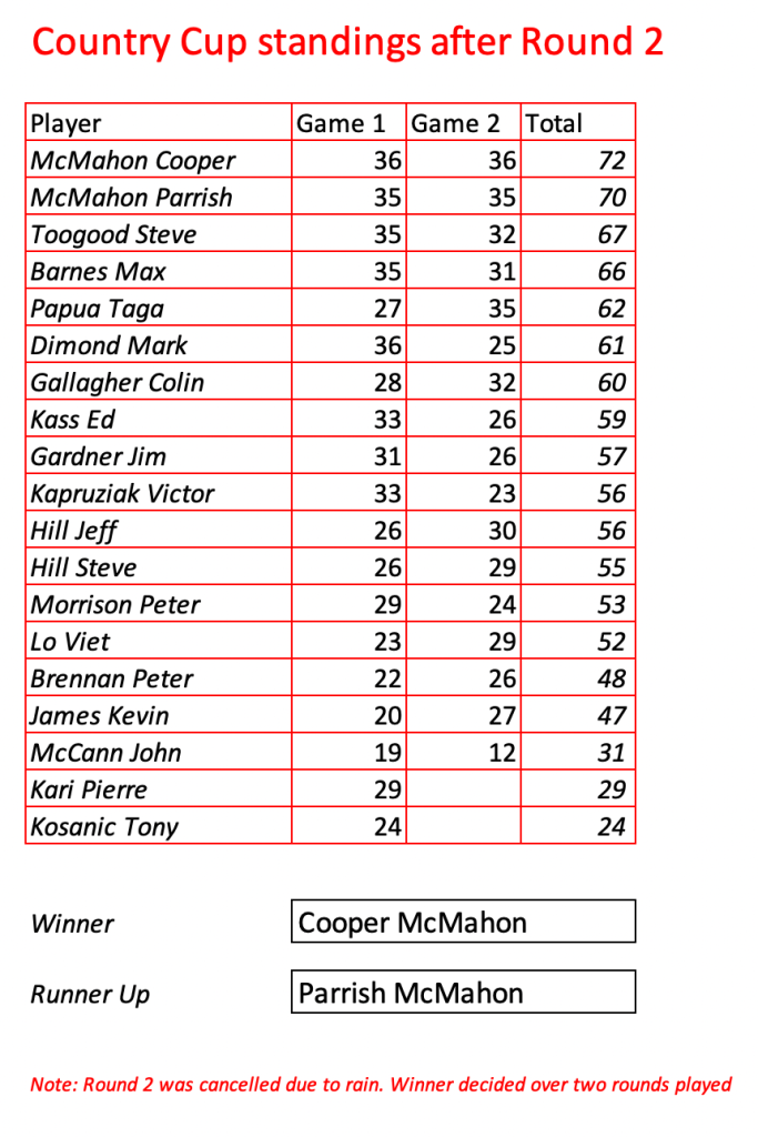 | Col Glozier Country Cup | Cooper McMahon | 72 | Parrish McMahon | 70 |