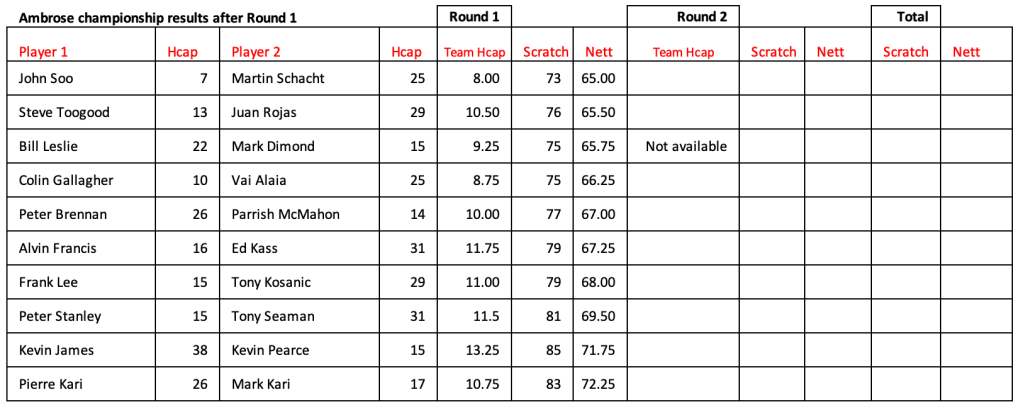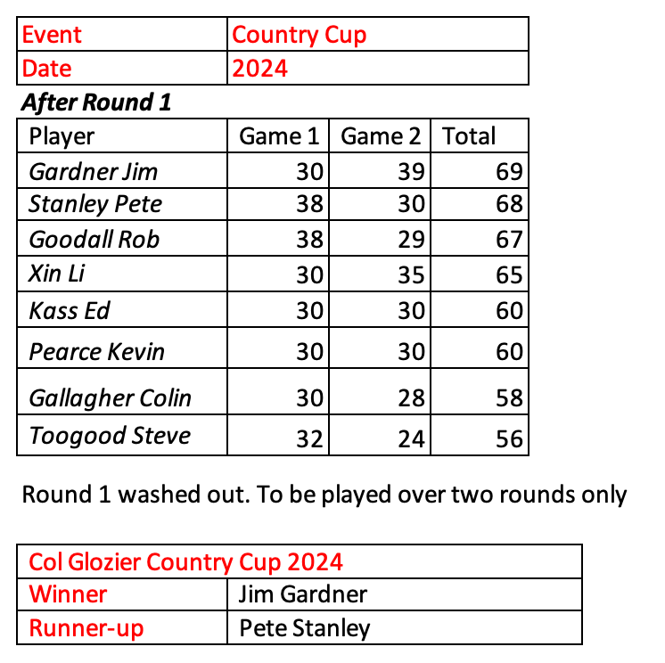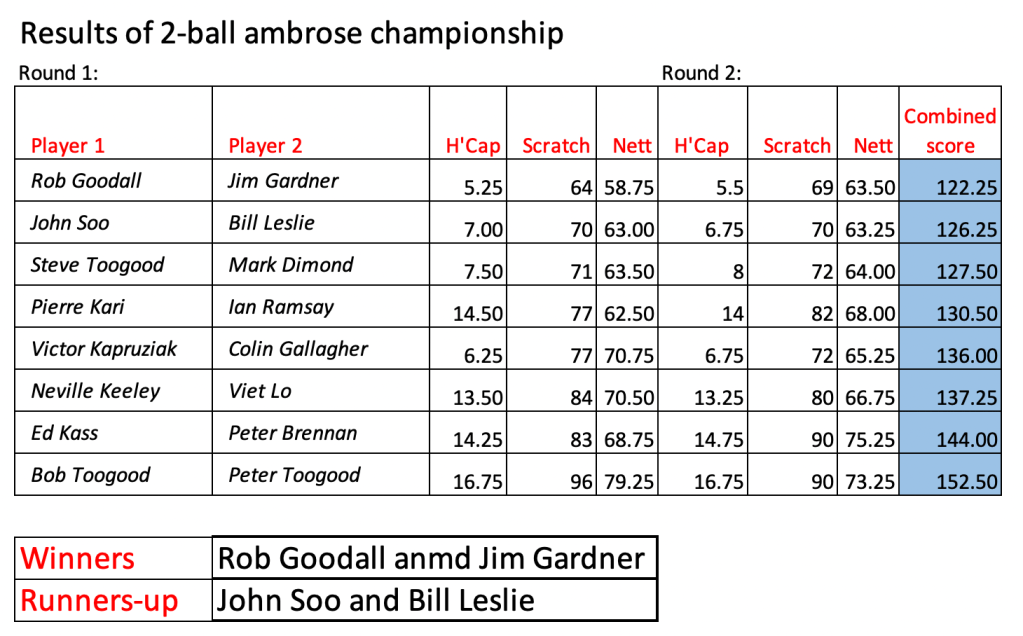 | Ambrose Championship | Winners | Rob Goodall | Jim Gardner | 122.25 |
