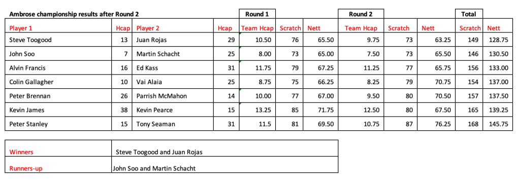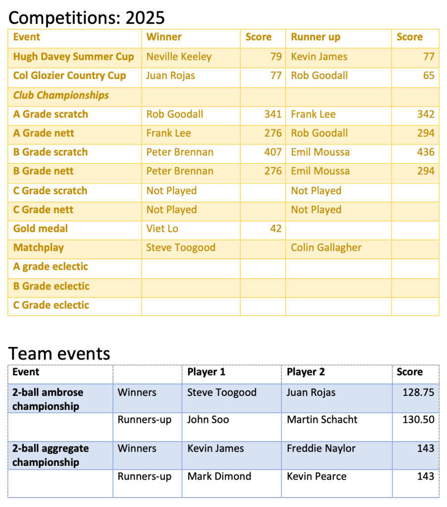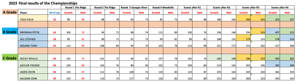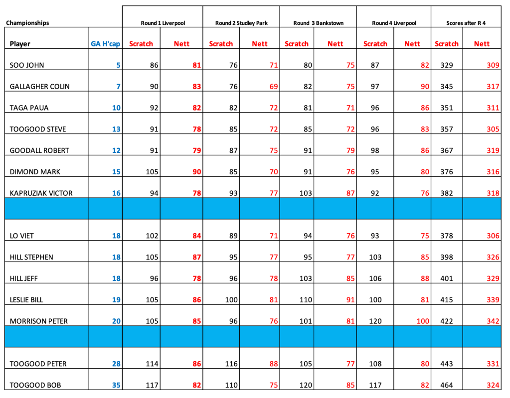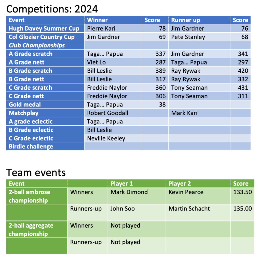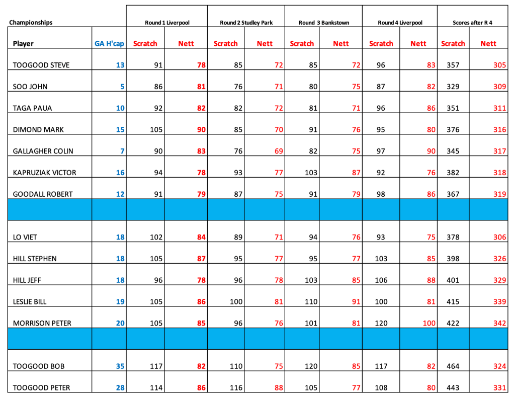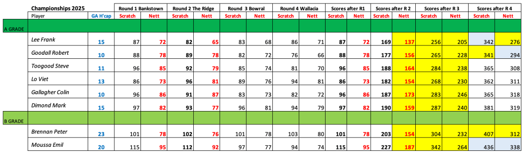 | A Grade nett | Steve Toogood | 305 | John Soo | 309 |