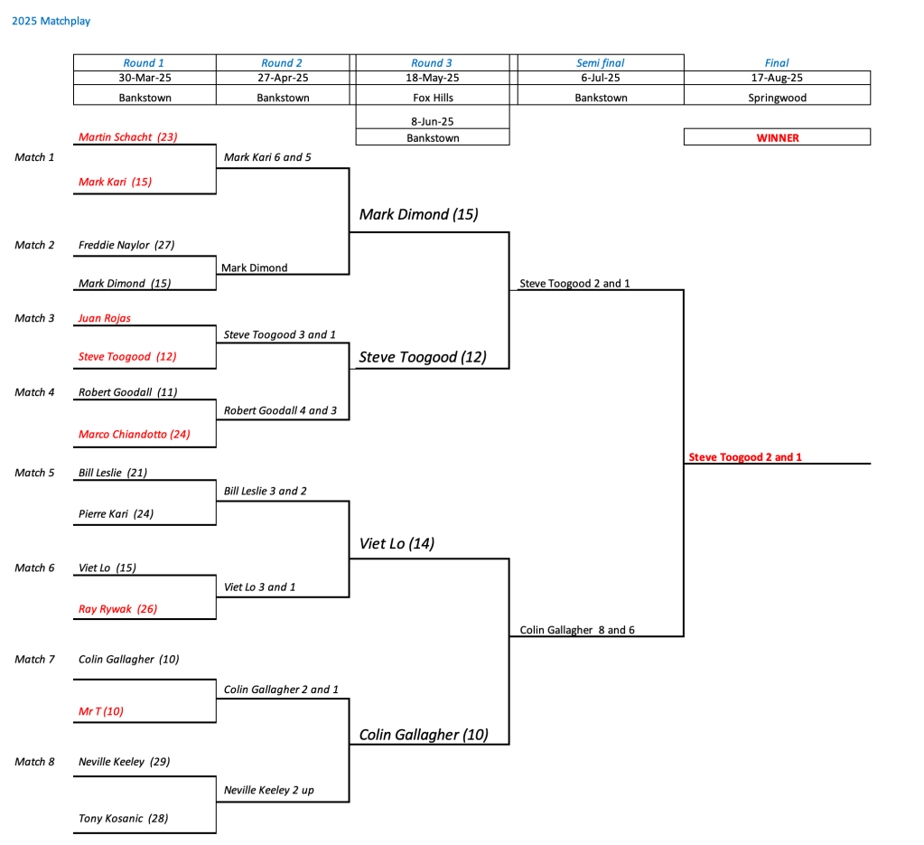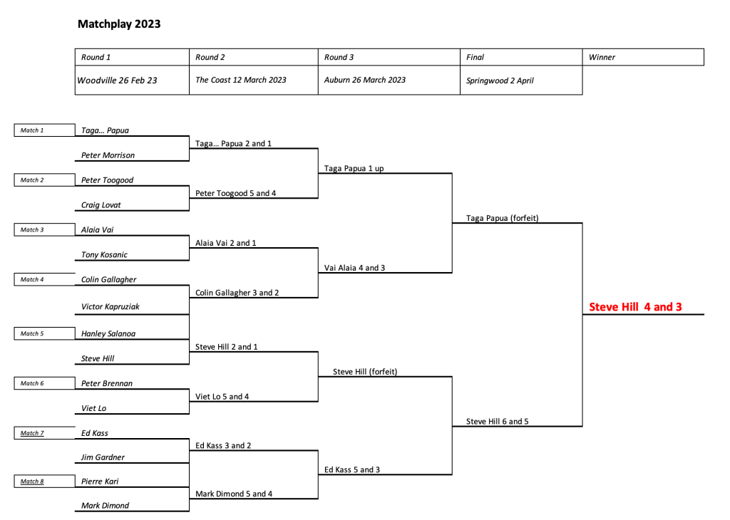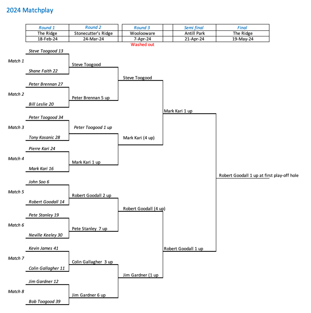 | Lucky losers matchplay | Parrish McMahon | Jeff Hill | 1 up | |