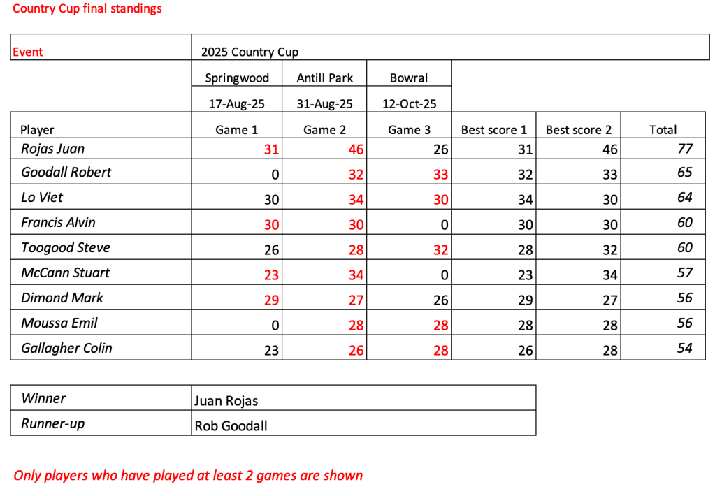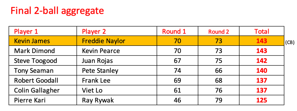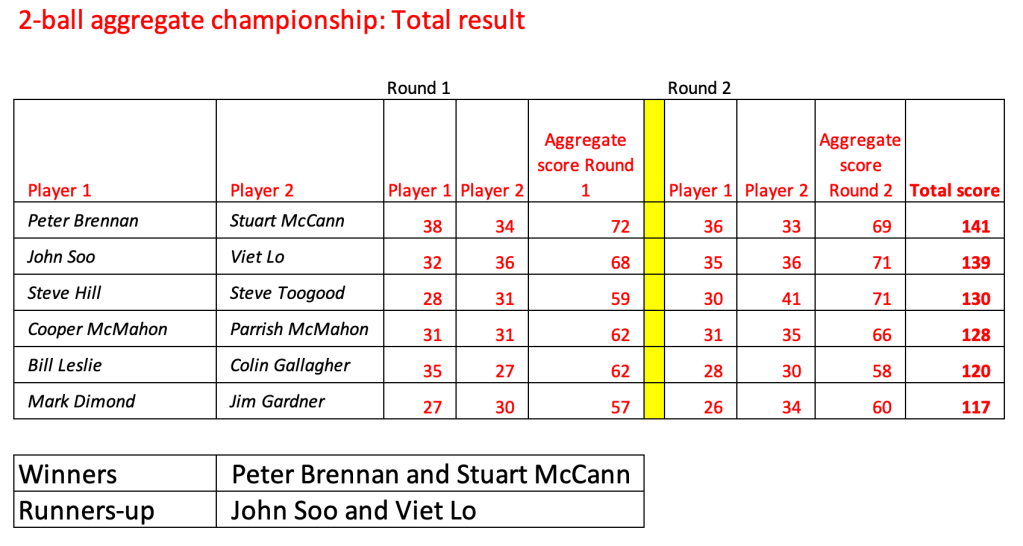 | Runners-up | John Soo | Bill Leslie | 126.25 | |