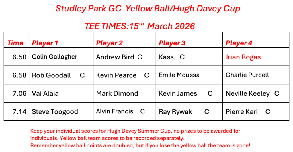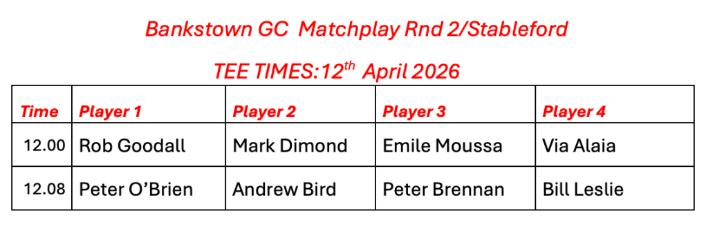 Note the 1.00pm tee off time for Bankstown due to pennants being played in front of our group.