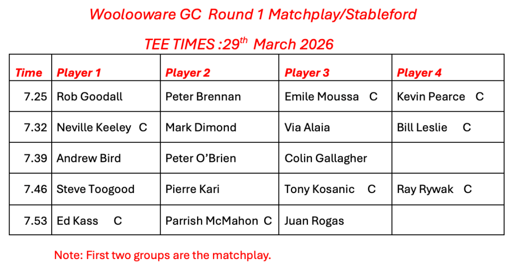 Note: The Woolooware game is meant to be the first round of the matchplay championship. It is very important that you let me know well in advance if you are playing or not so that the matchplay draw can be conducted.