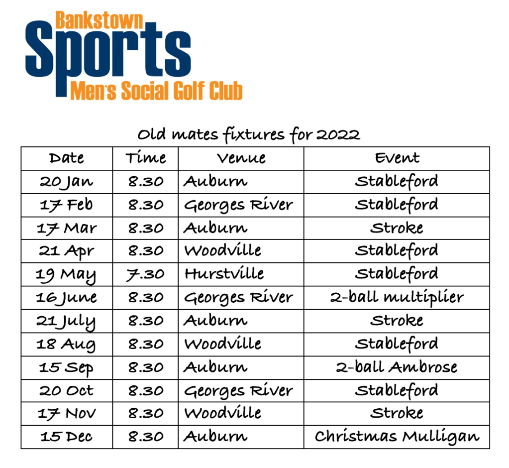 Note: All games at Bankstown are 9.30 hit-offs. The cost is $50 per player which includes the use of a cart.