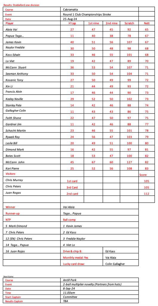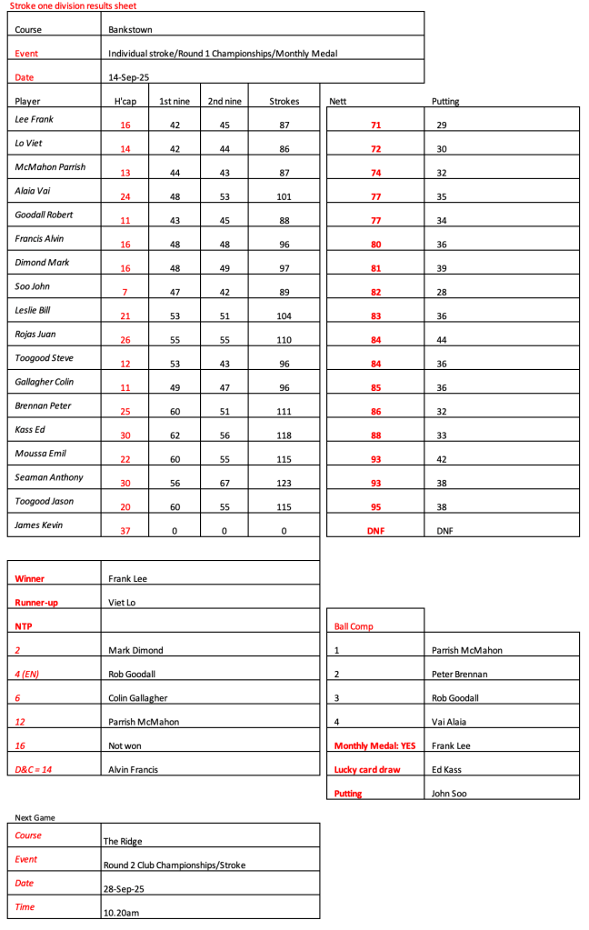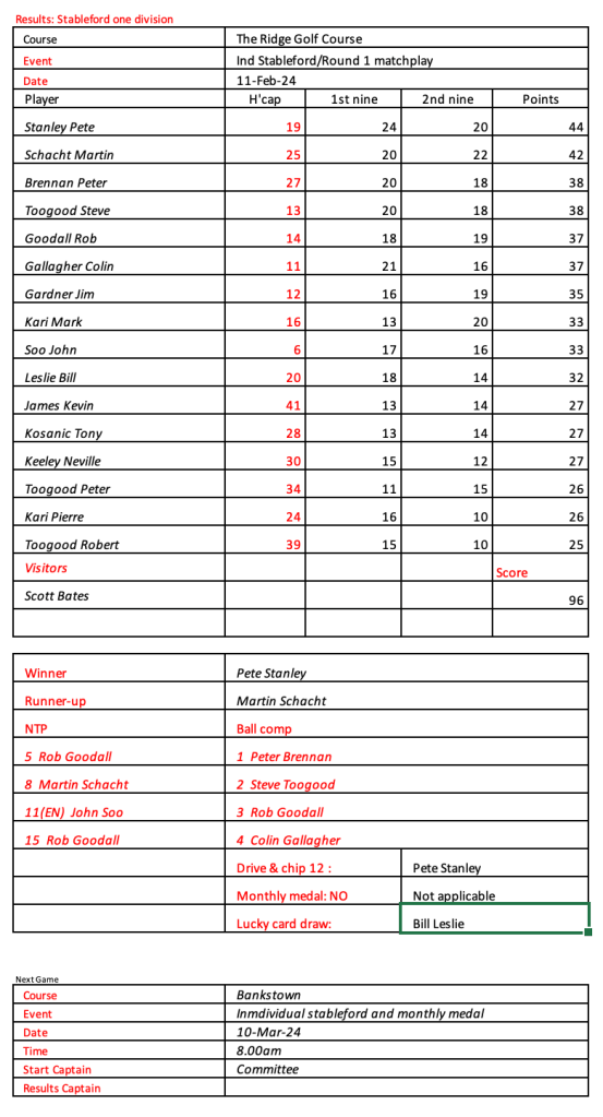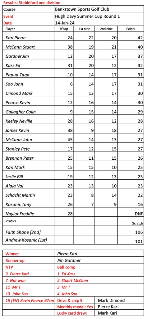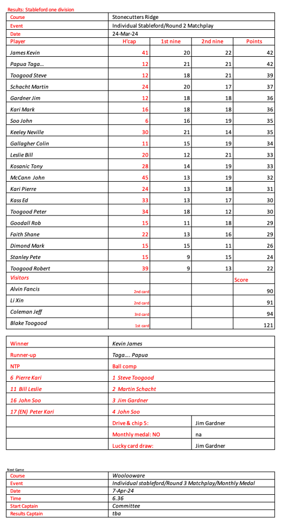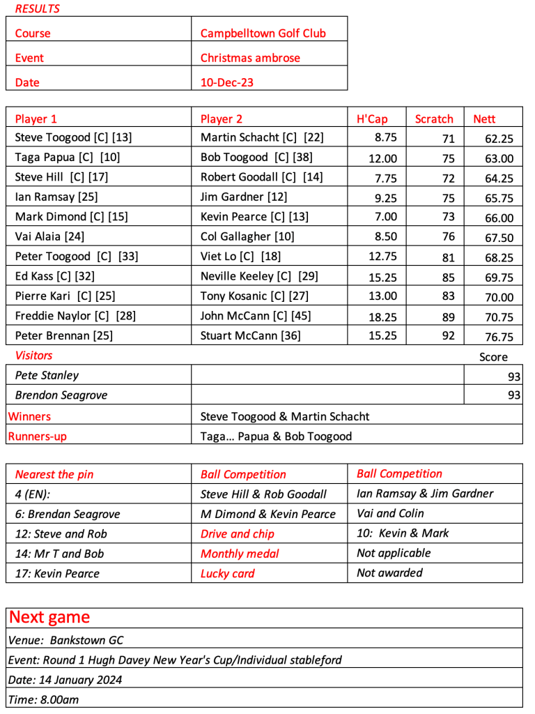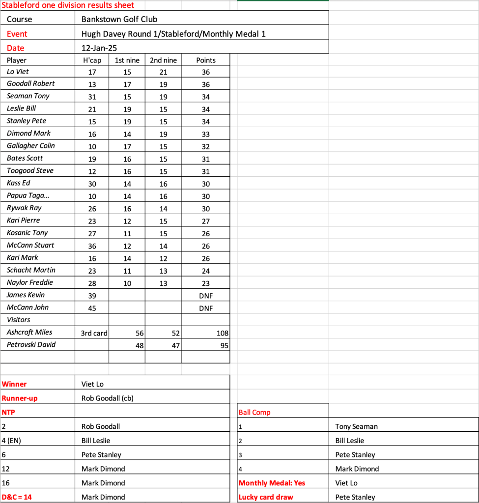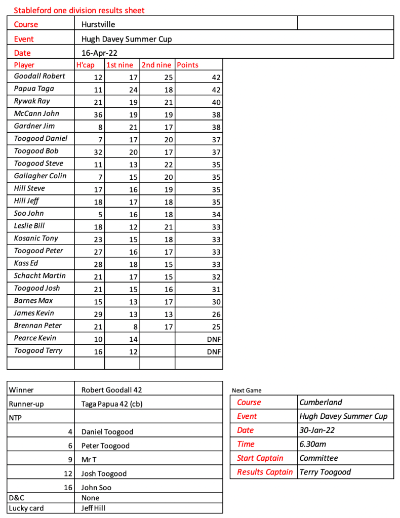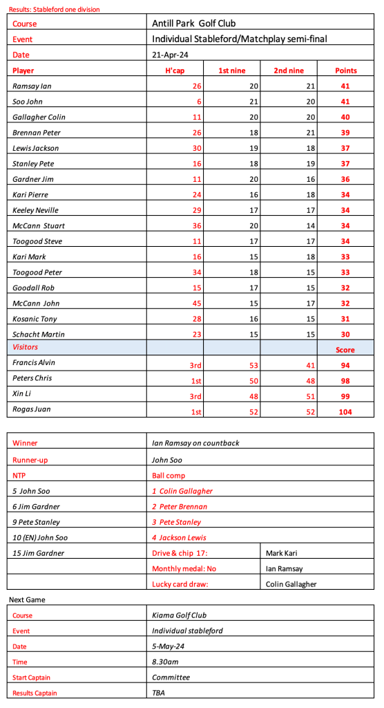 Some very good scores after a pleasant day had by all at the revamped Hurstville Course, our President, Kevin couldn’t stop smiling. Well done on your win!
