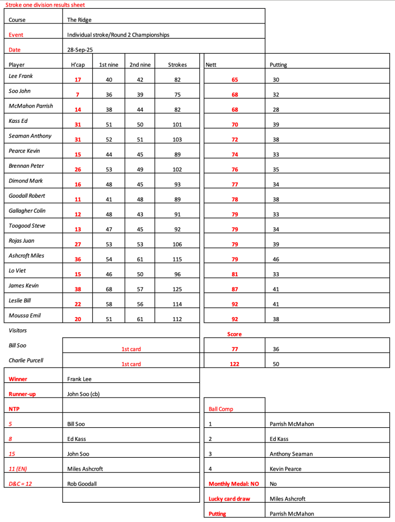 Some very good scores in today but Viet is on a winning streak!! Kevin Pearce broke 80 and John Soo had only 26 putts.